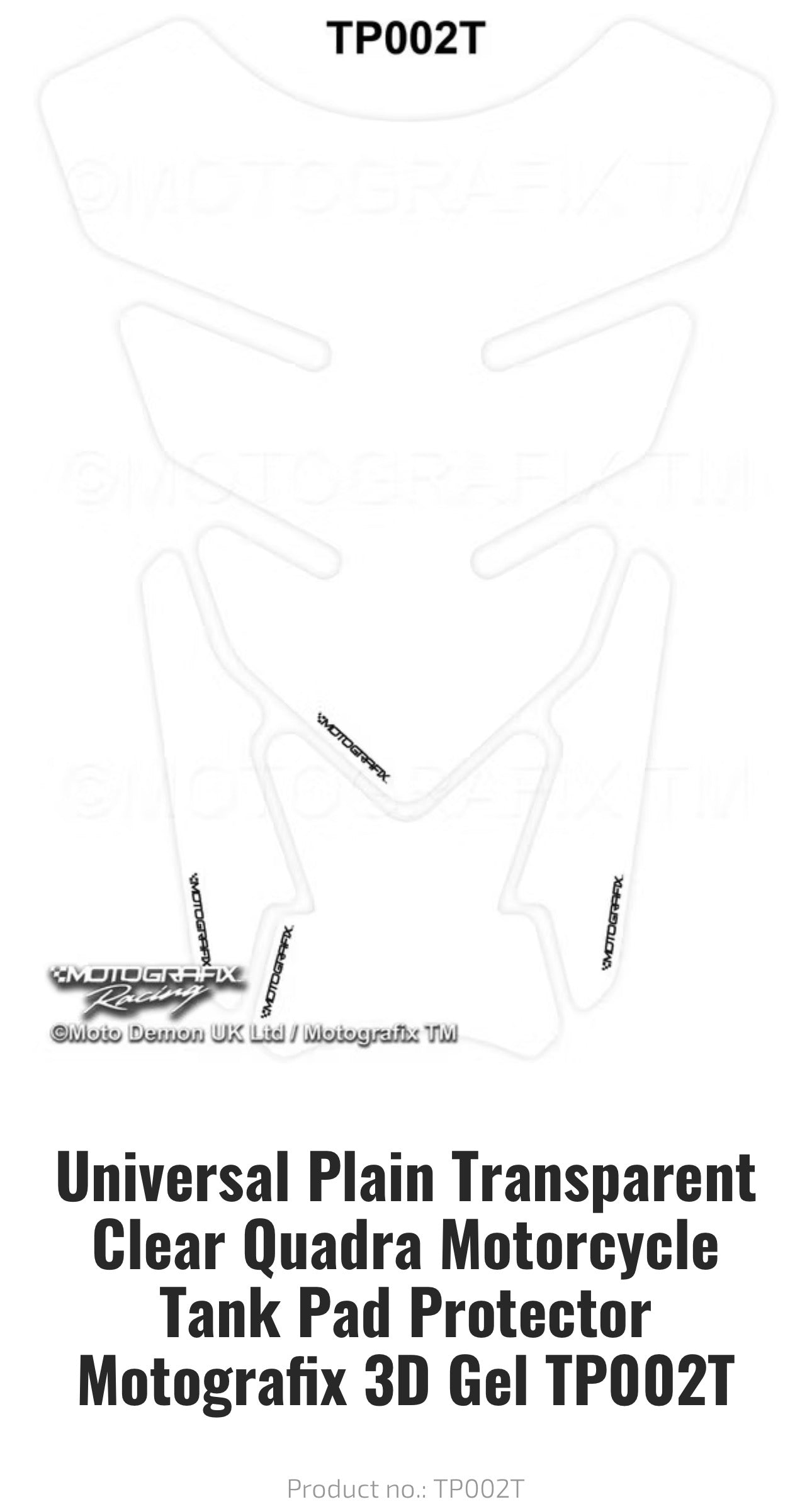 Universal Plain Transparent Clear Quadra Motorcycle Tank Pad Protector Motografix 3D Gel TP002T